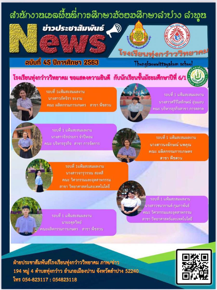 ขอแสดงความยินดีกับนักเรียนชั้นม.6/1ที่ได้ผ่านการคัดเลือกศึกษาต่อมหาลัยปีการศึกษา 2563
