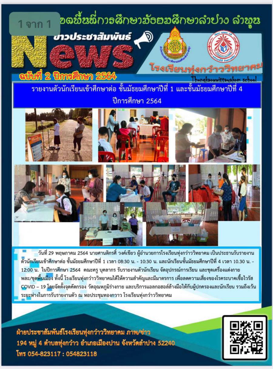 รายงานตัวนักเรียนเข้าศึกษาต่อม.1และม.4 ปีการศึกษา 2564