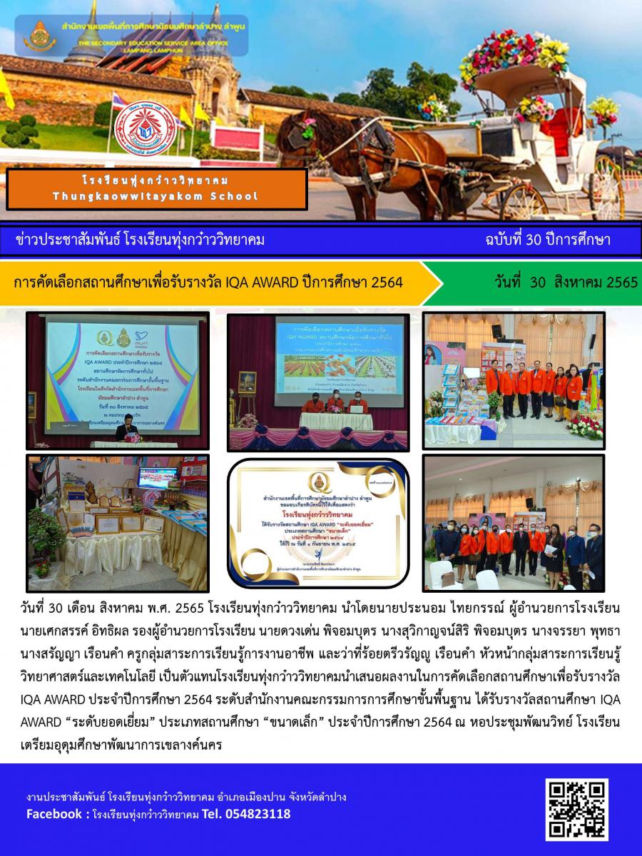 การคัดเลือกสถานศึกษาเพื่อรับรางวัล IQA AWARD ปีการศึกษา 2564