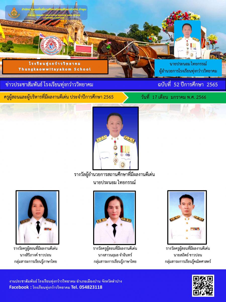 ขอแสดงความยินดีครูผู้สอนและผู้บริหารที่มีผลงานดีเด่น ประจำปีการศึกษา 2565