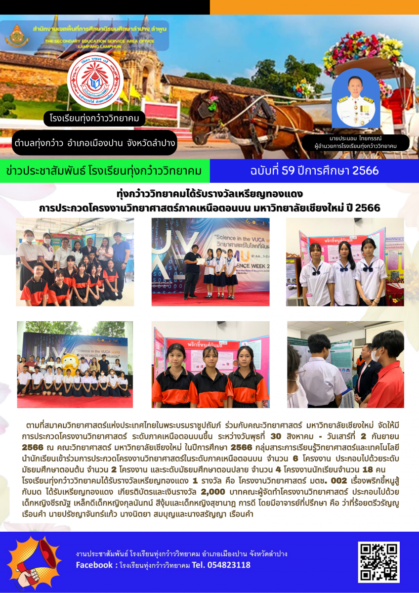 การประกวดโครงงานวิทยาศาสตร์ภาคเหนือตอนบน มหาวิทยาลัยเชียงใหม่ ปี 2566