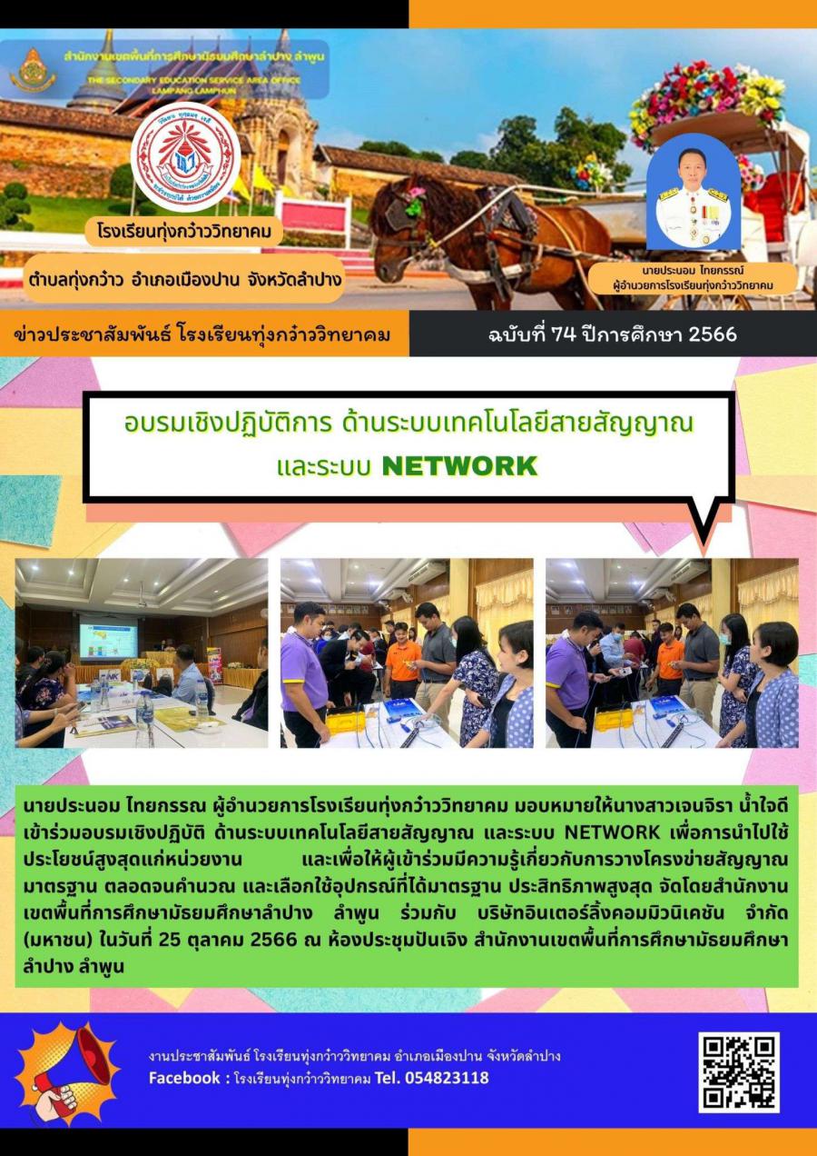 อบรมเชิงปฏิบัติการ ด้านระบบเทคโนโลยีสายสัญญาณและระบบ Network