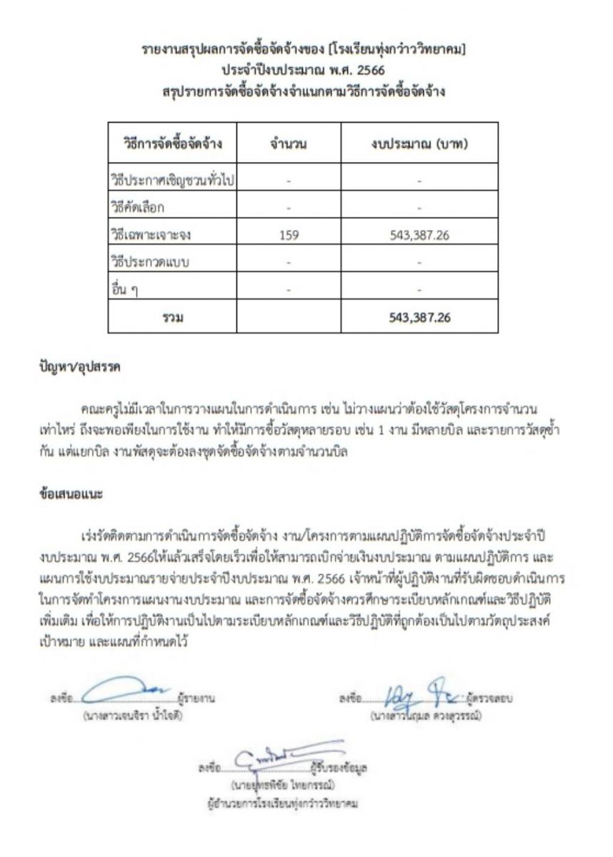 รายงานสรุปผลการจัดซื้อจัดจ้างหรือการจัดหาพัสดุประจำปี