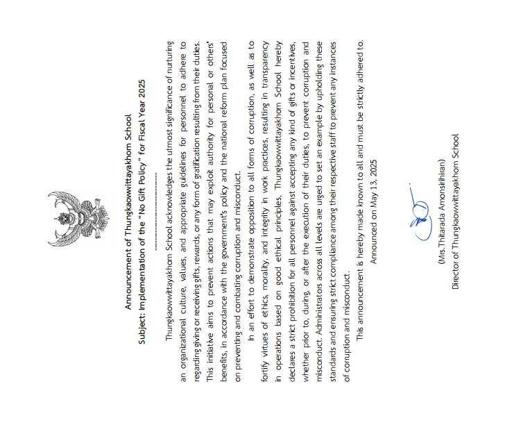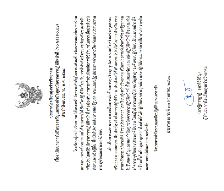 ประกาศเจตนารมณ์และการสร้างวัฒนธรรม ตามนโยบาย No Gift Policy จากการปฏิบัติ หน้าที่