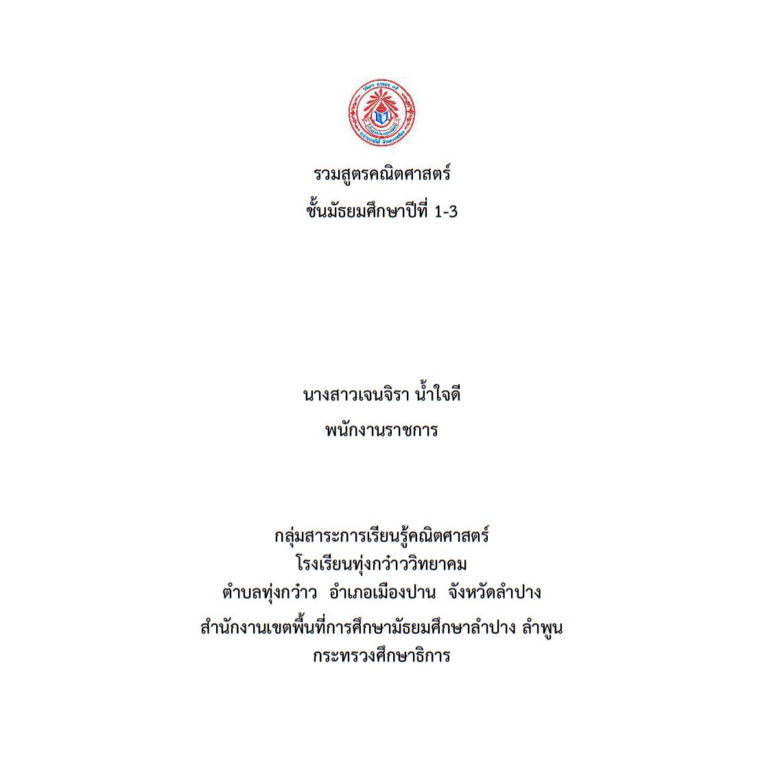 ชื่อผลงาน รวมสูตรคณิตศาสตร์ ชั้นมัธยมศึกษาปีที่ 1-3 ของนาวสาวเจนจิรา น้ำใจดี