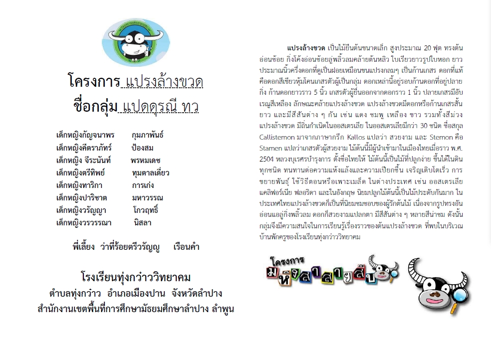 โครงการ แปรงล้างขวด ชื่อกลุ่ม แปดดุรณี ทว