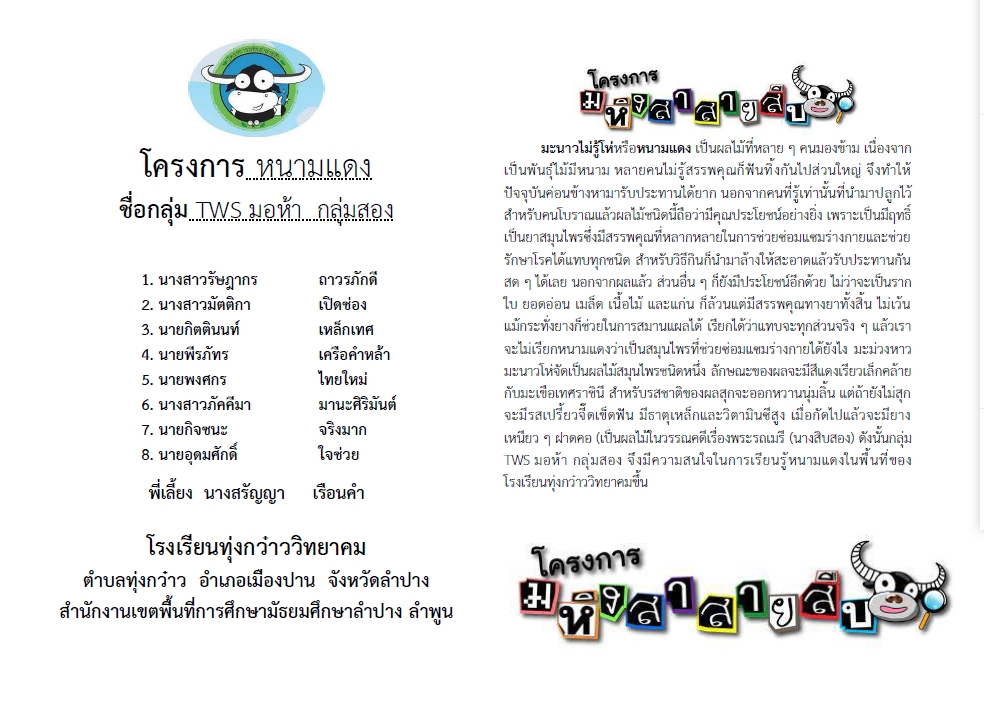 โครงการ หนามแดง ชื่อกลุ่ม TWS ม.5 กลุ่มสอง
