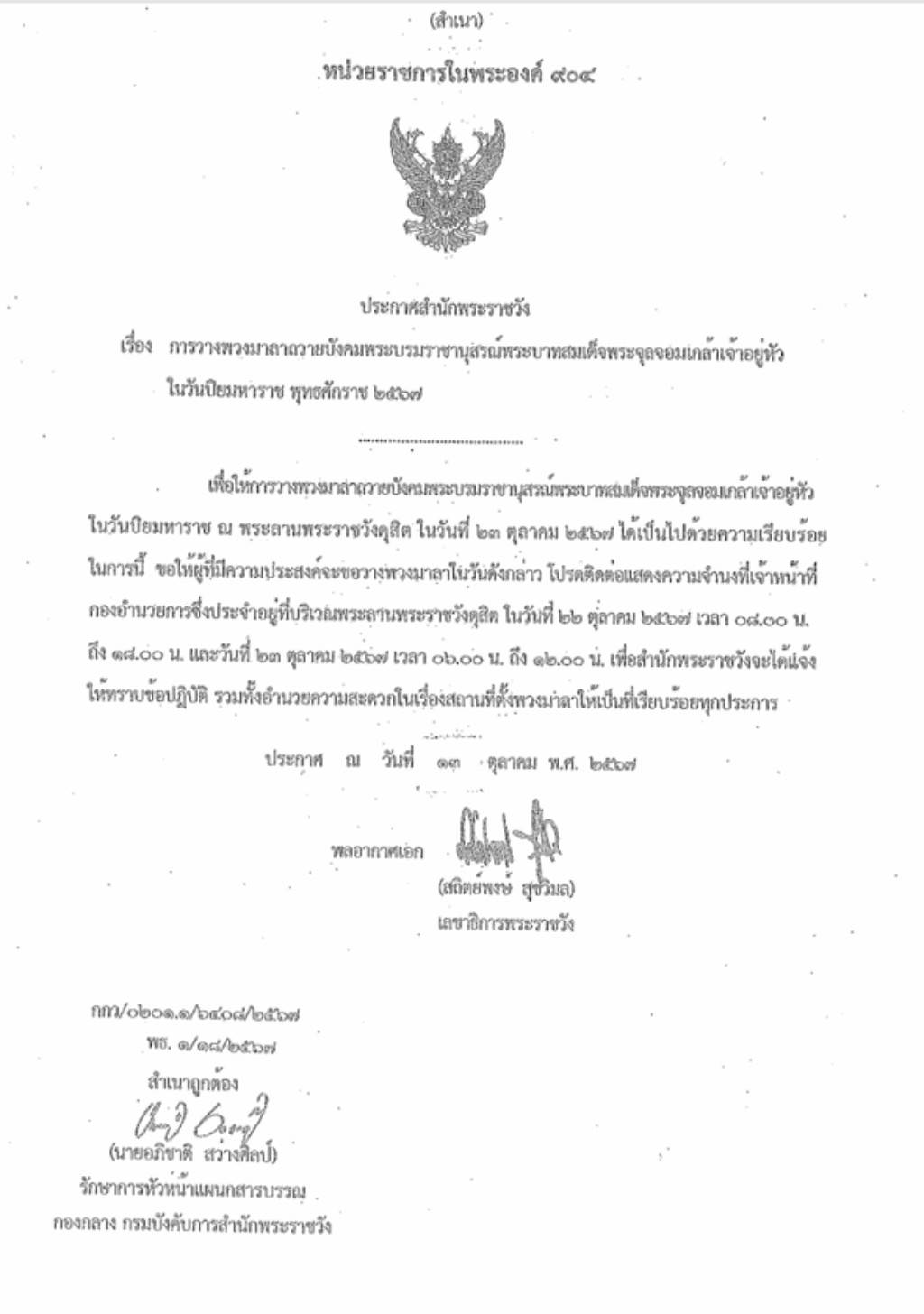 งานถวายบังคมพระบรมราชานุสรณ์พระบาทสมเด็จพระจุลจอมเกล้าเจ้าอยู่หัว พุทธศักราช 2567