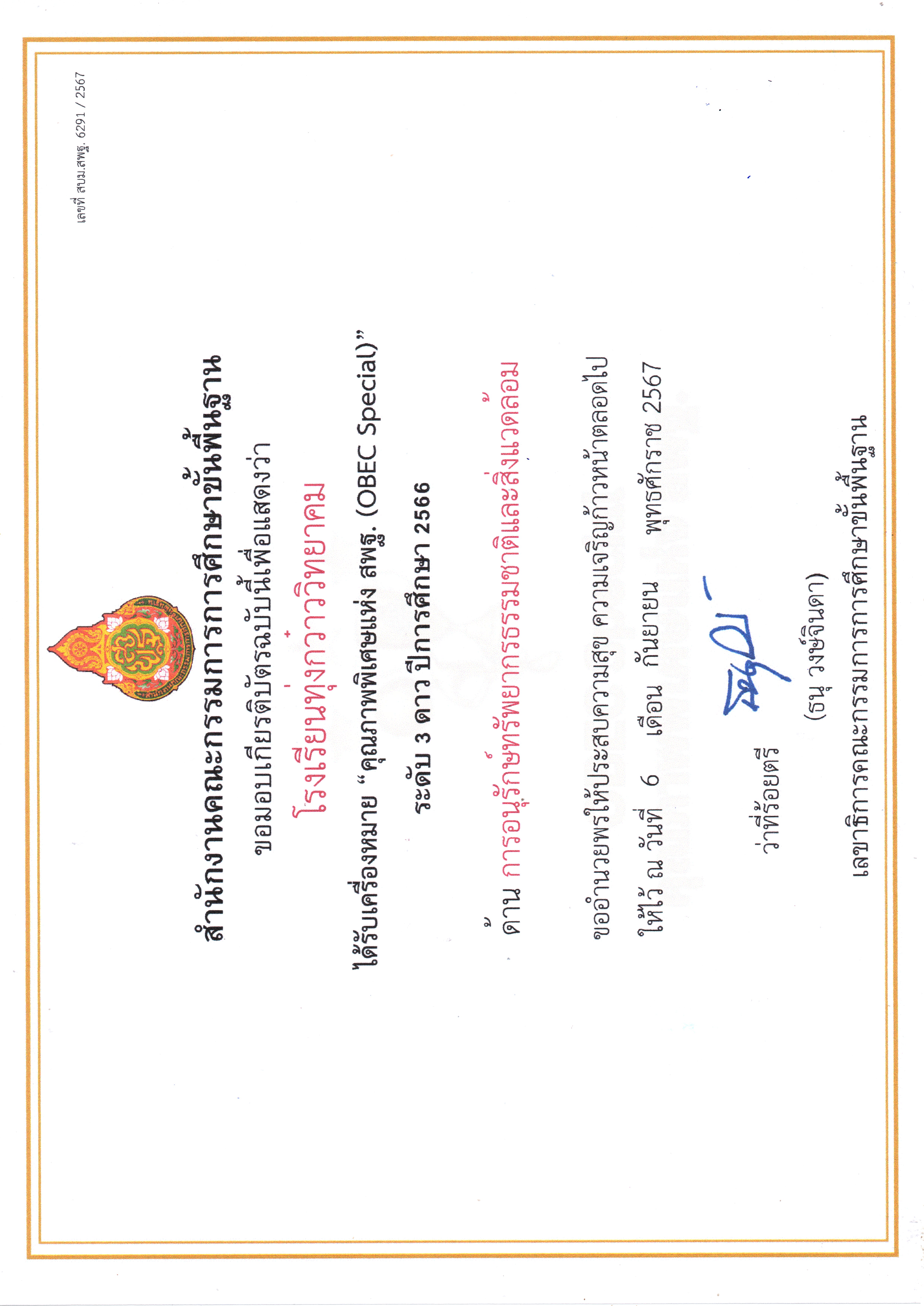 โรงเรียนทุ่งกว่าววิทยาคมได้รับเครื่องหมาย "คุณภาพพิเศษแห่ง สพฐ. (OBEC Special)"ระดับ 3 ดาว ปีการศึกษา 2566