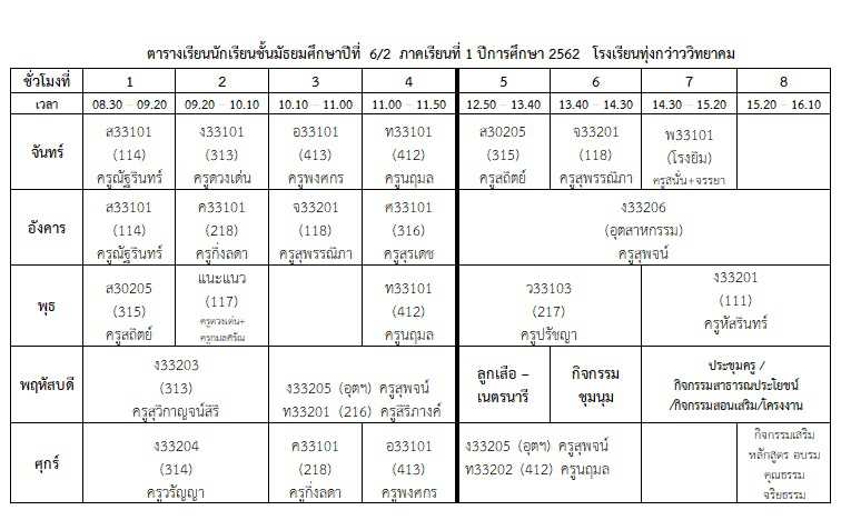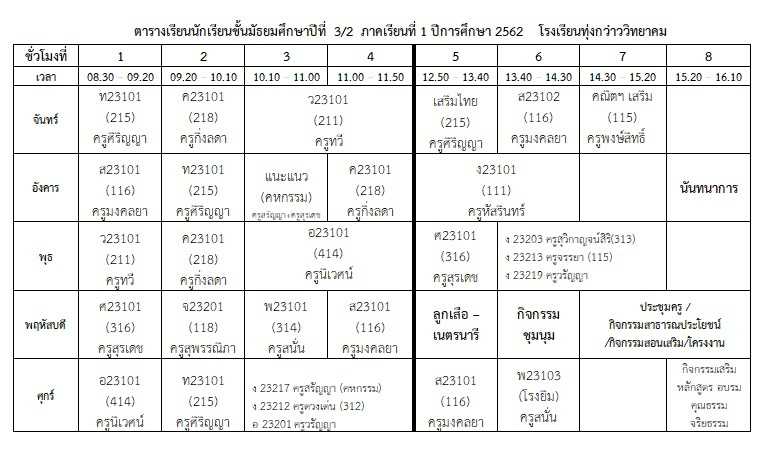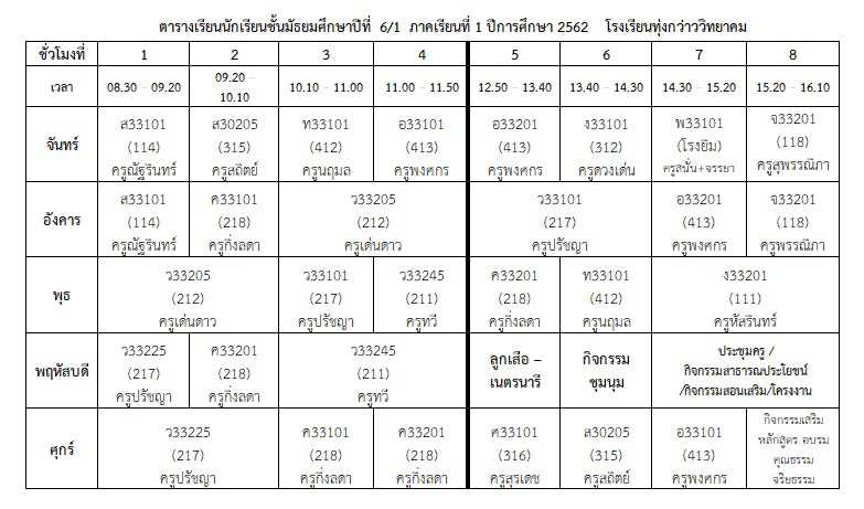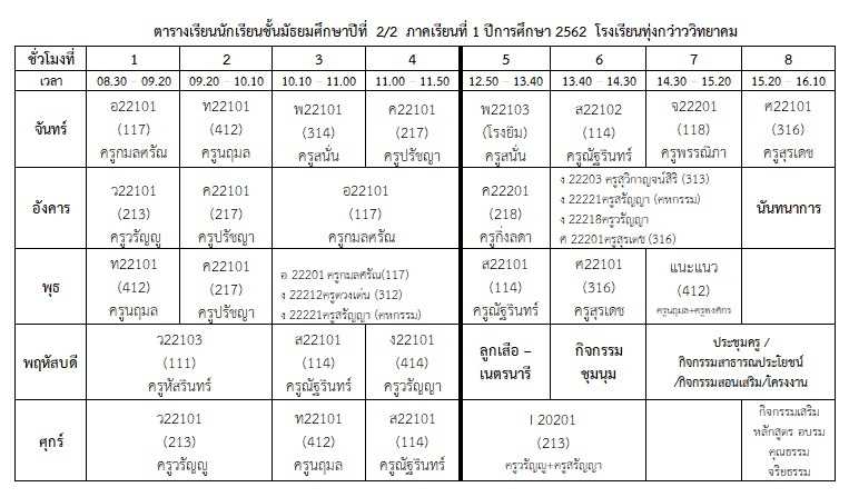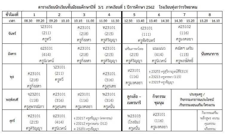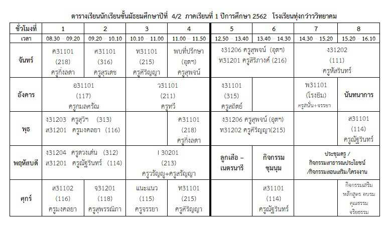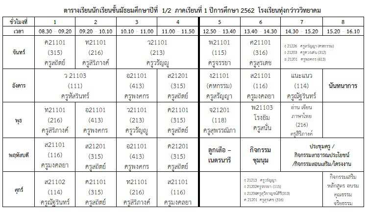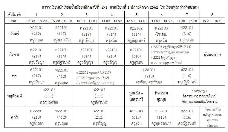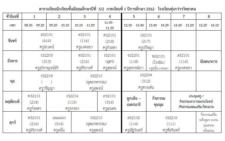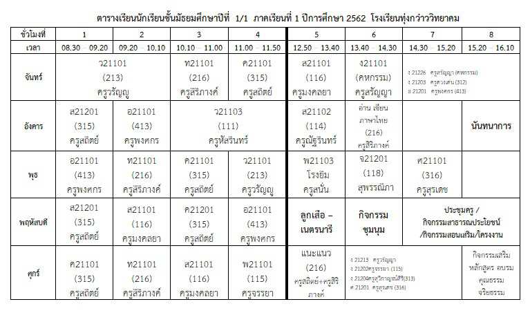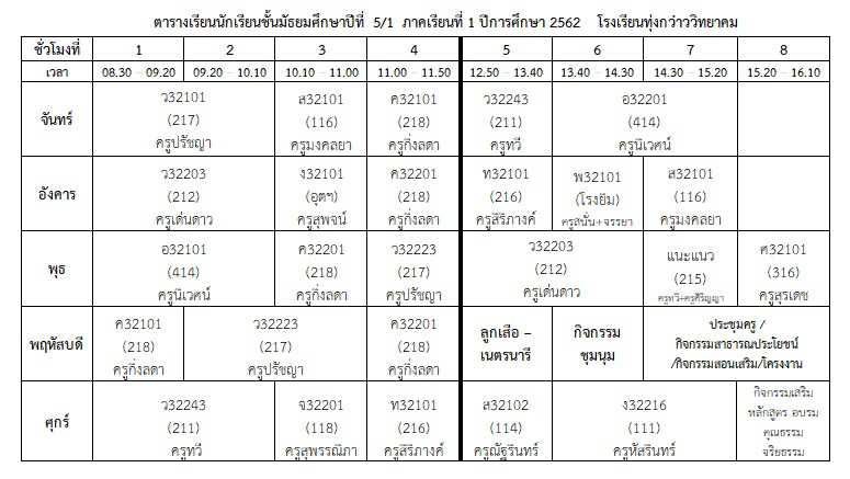 ตารางเรียนนักเรียน ภาคเรียนที่ 1 ปีการศึกษา 2562