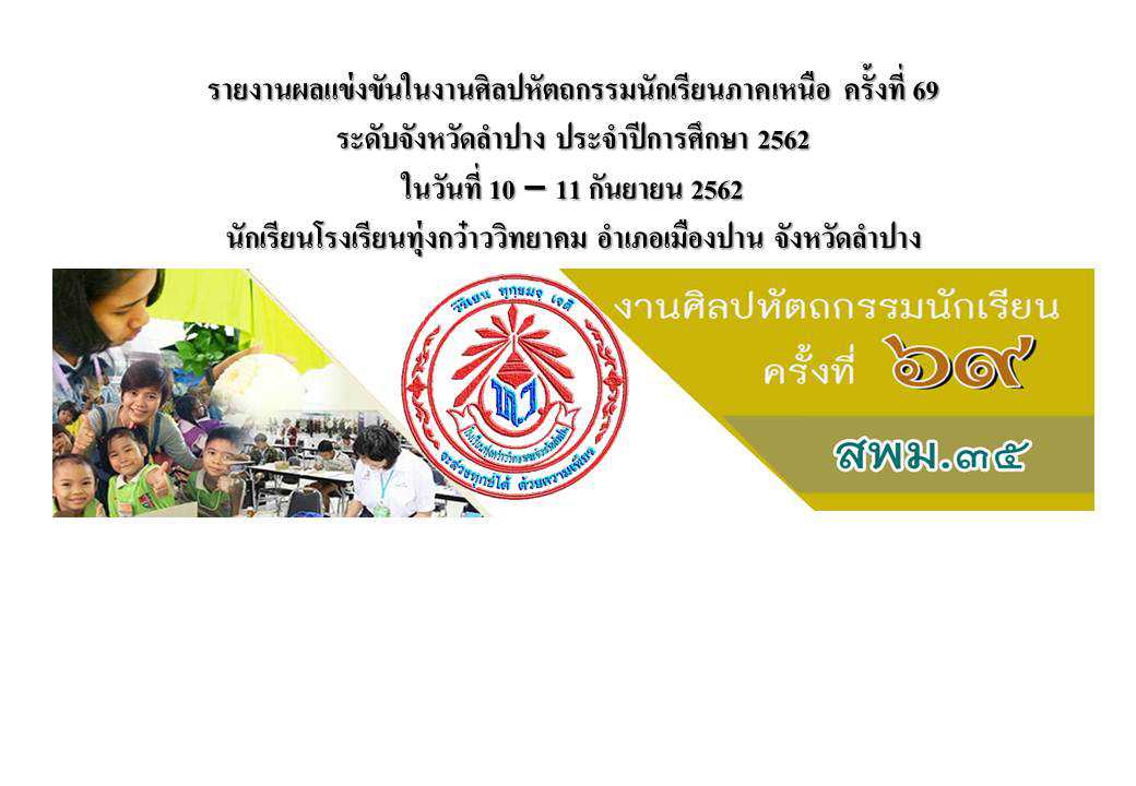 | สรุปผลกิจกรรมแข่งขันโรงเรียนทุ่งกว๋าววิทยาคม ในงานศิลปหัตถกรรมนักเรียน ครั้งที่ 69 ปีการศึกษา 2562 ระหว่างวันที่ 10-11 กันยายน 2562 |