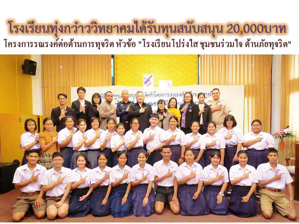 โรงเรียนทุ่งกว๋าววิทยาคมได้รับทุนสนับสนุน 20,000บาท จากโครงการรณรงค์ต่อต้านการทุจริต หัวข้อ? "โรงเรียนโปร่งใส ชุมชนร่วมใจ ต้านภัยทุจริต"