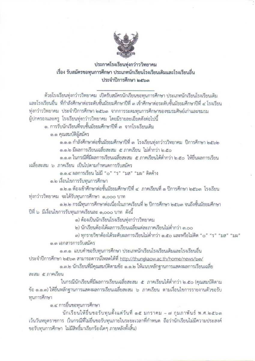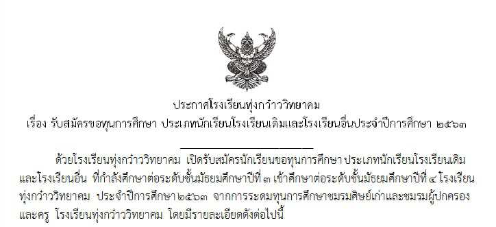 เรื่อง รับสมัครขอทุนการศึกษา ประเภทนักเรียนโรงเรียนเดิมและโรงเรียนอื่นประจำปีการศึกษา ๒๕๖๓