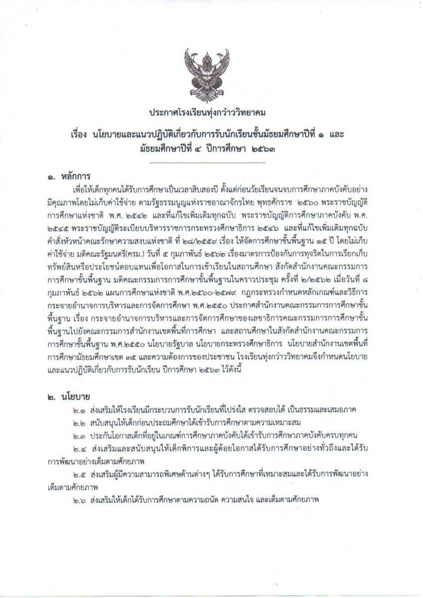 นโยบายและแนวปฏิบัติการรับนักเรียนชั้นมัธยมศึกษาปีที่ 1และมัธยมศึกษาปีที่4 ปีการศึกษา 2563
