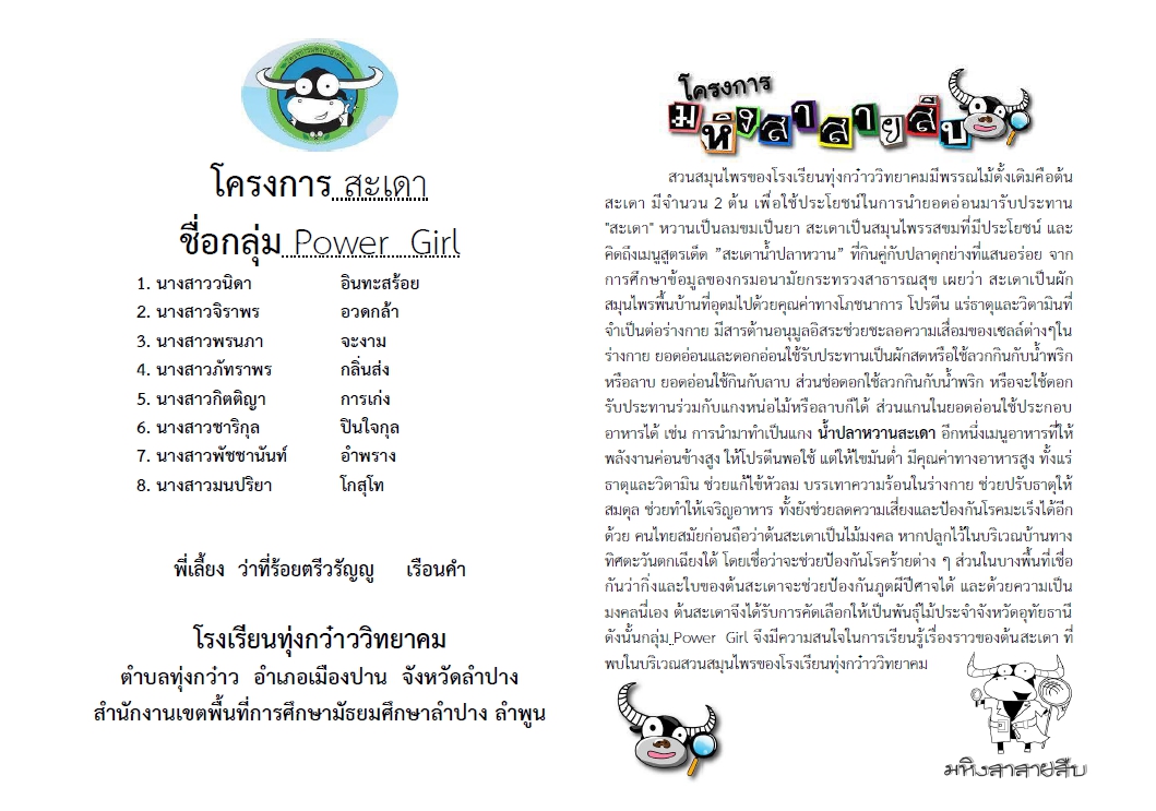 โครงการมหิงสาสายสืบ ปี 2564 สะเดา