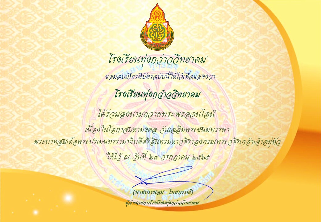 โรงเรียนทุ่งกว๋าวิทยาคม ขอเชิญชวนร่วมลงนามถวายพระพร พระบาทสมเด็จพระเจ้าอยู่หัว เนื่องในโอกาสวันเฉลิมพระชนมพรรษา วันที่ ๒๘ กรกฎาคม ๒๕๖๕ ผ่านระบบออนไลน์.....(รับเกียรติบัตรสำหรับผู้ร่วมกิจกรรมทุกท่าน)