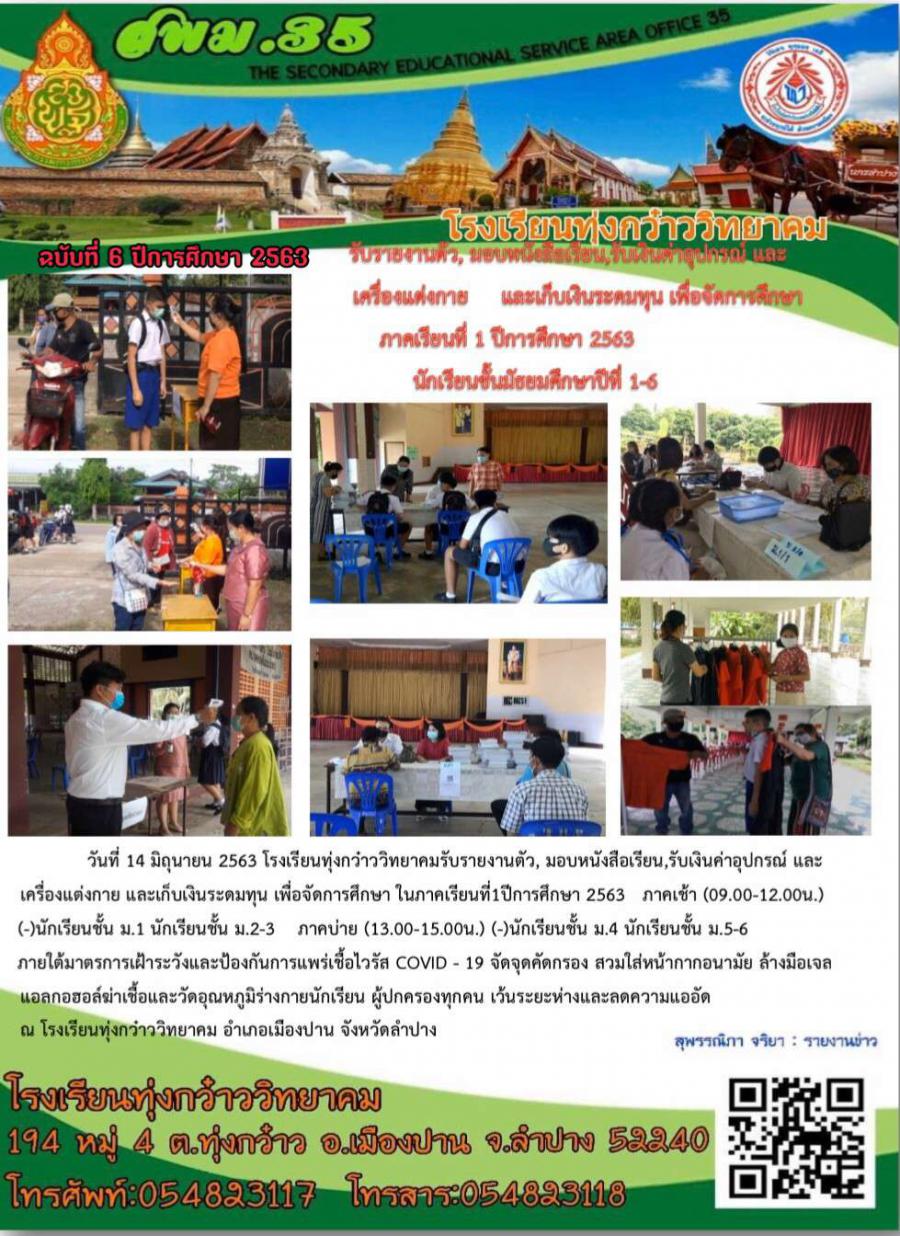 มอบตัวนักเรียน มอบหนังสือเรียนและจ่ายค่าอุปกรณ์การเรียนเก็บเงินระดมทุนภาคเรียน1/2563ม.1-ม.6
