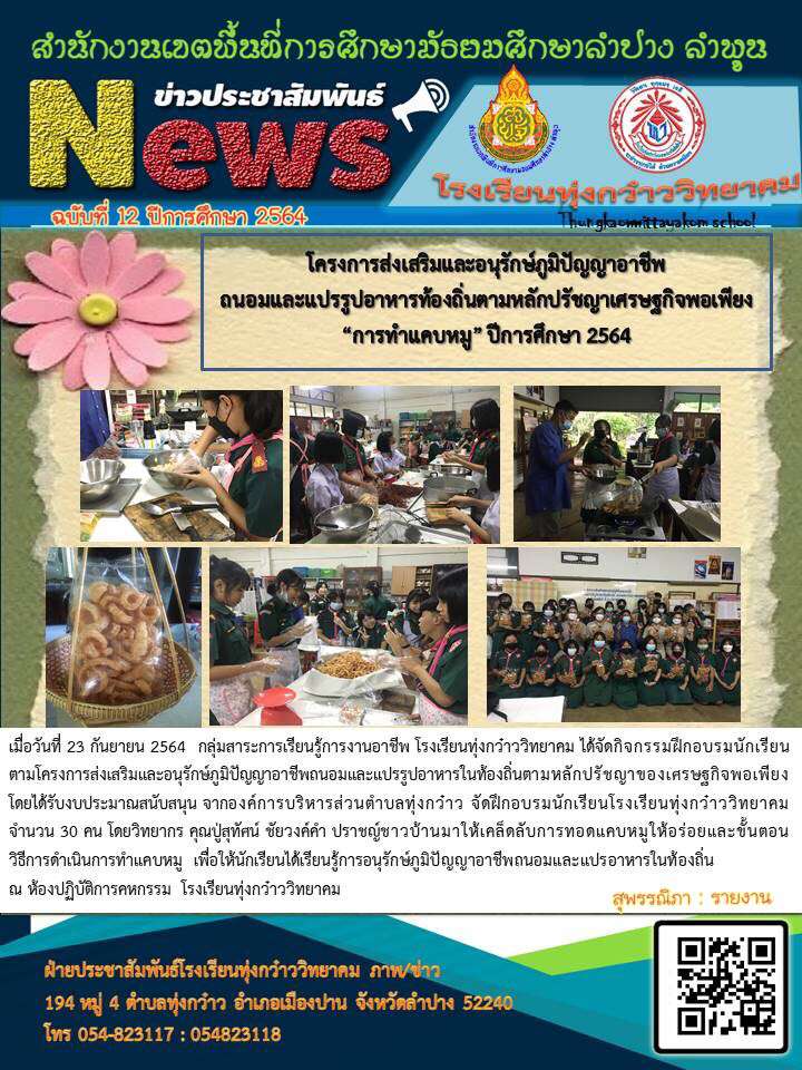 โครงการส่งเสริมและอนุรักษ์ภูมิปัญญาถนอมและแปรรูปอาหารท้องถิ่นตามหลักปรัชญาเศรษฐกิจพอเพียง การทำแคบหมู