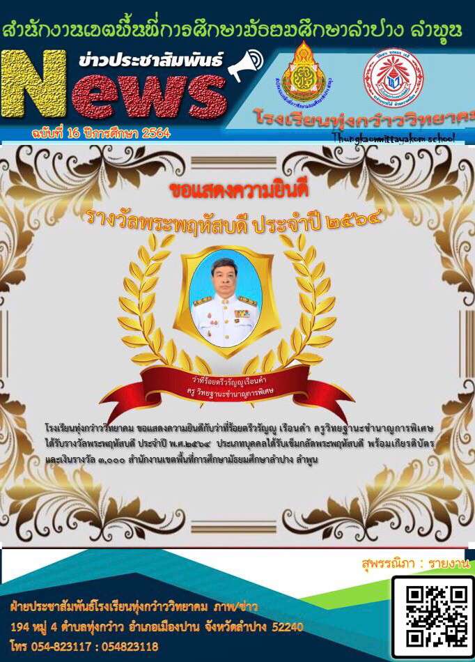 รางวัลพระพฤหัสบดี ปีการศึกษา 2564