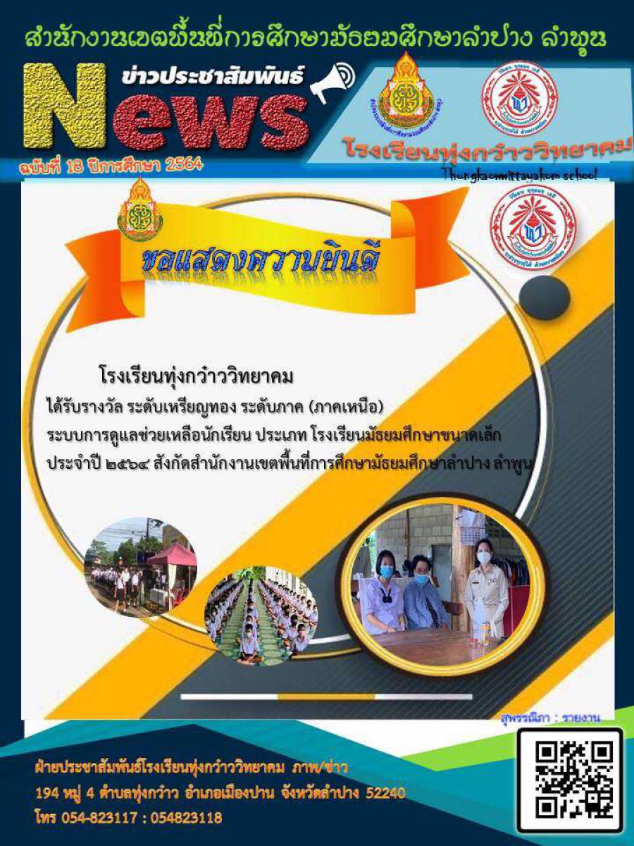 รางวัลระดับเหรียญทอง ภาคเหนือ ระบบการดูแลช่วยเหลือนักเรียนปีการศึกษา 2564