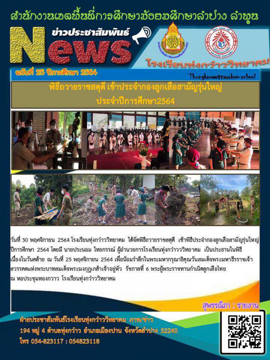 พิธีถวายราสดุดี เ้าประจำกองลูกเสือสามัญรุ่นใหญ่ ประจำปีการศึกษา 2564