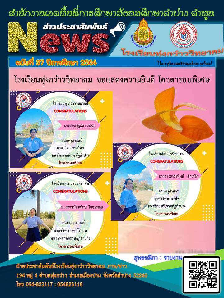 โรงเรียนทุ่งกว๋าวววิทยาคม ขอแสดงความยินดี ปีการศึกษา 2564