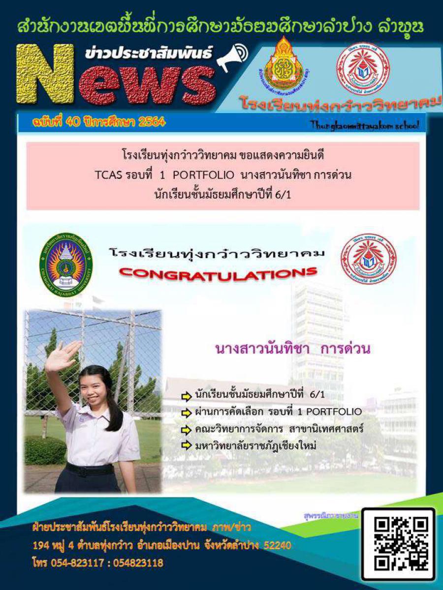 โรงเรียนทุ่งกว๋าววิทยาคม ขอแสดงความยินดี ปีการศึกษา 2564