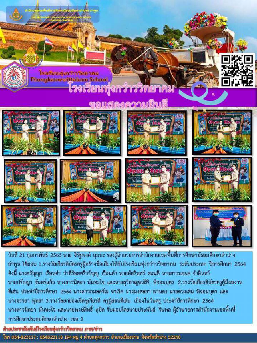 รางวัลครูผู้สร้างชื่อเสียงให้กับโรงเรียน ครูผู้มีผลงานดีเด่น และครูผู้สอนดีเด่น ปีการศึกษา 2564
