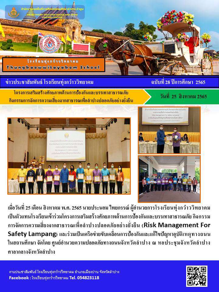 โครงการเสริมสร้างศักยภาพด้านการป้องกันและบรรเทาสาธารณภัย กิจกรรมการจัดการความเสี่ยงจากสาธารณเพื่อลำปางปลอดภัยอย่างยั่งยืน