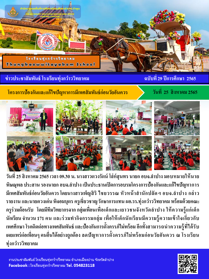 โครงการป้องกันและแก้ไขปัญหาการมีเพศสัมพันธ์ก่อนวัยอันควร