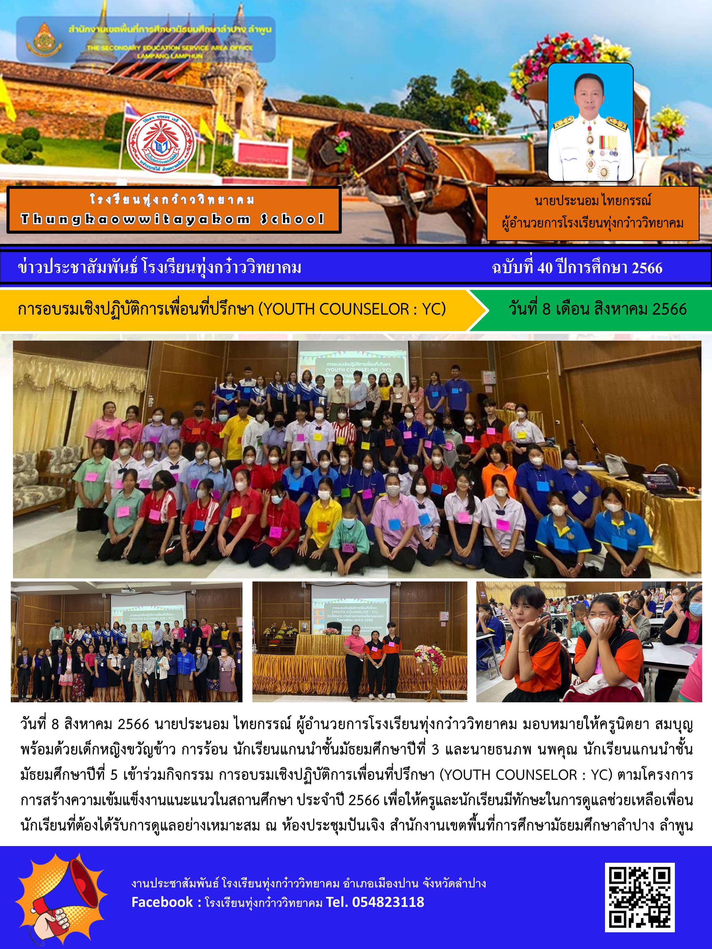 การอบรมเชิงปฏิบัติการเพื่อนที่ปรึกษา (YOUTH COUNSELOR : YC)