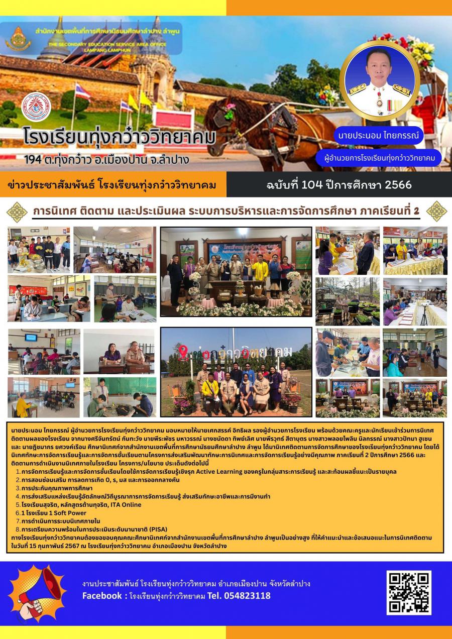 การนิเทศ ติดตาม และประเมินผล ระบบการบริหารและการจัดการศึกษา ภาคเรียนที่ 2