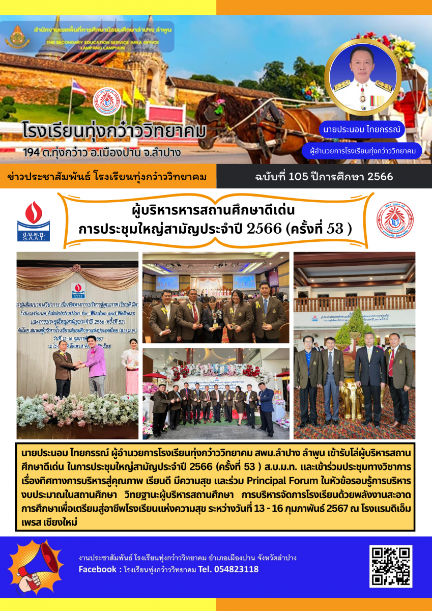 ผู้บริหารสถานศึกษาดีเด่น การประชุมใหญ่สามัญประจำปี 2566 (ครั้งที่ 53 )