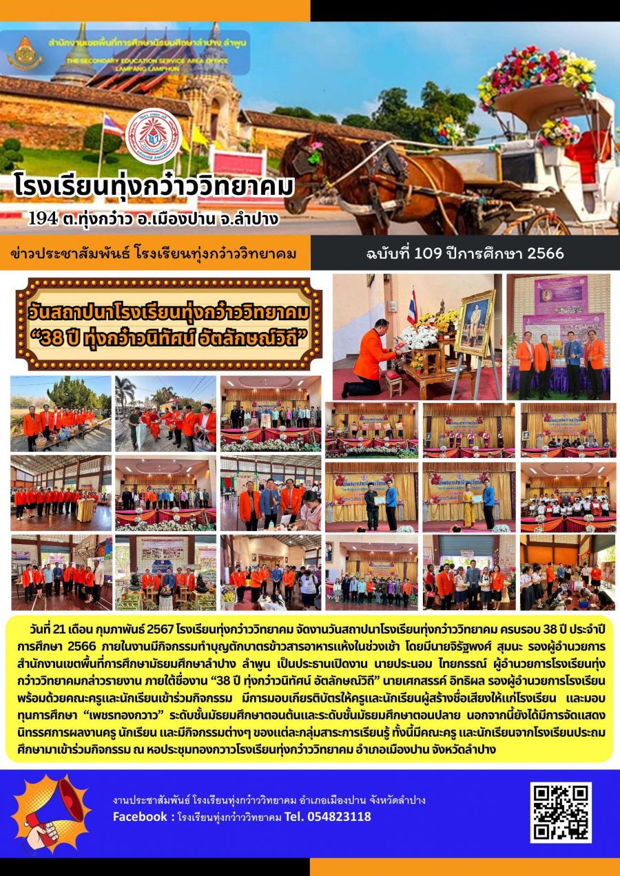 วันสถาปนาโรงเรียนทุ่งกว๋าววิทยาคม 38 ปี ทุ่งกว๋าวนิทัศน์ อัตลักษณ์วิถี
