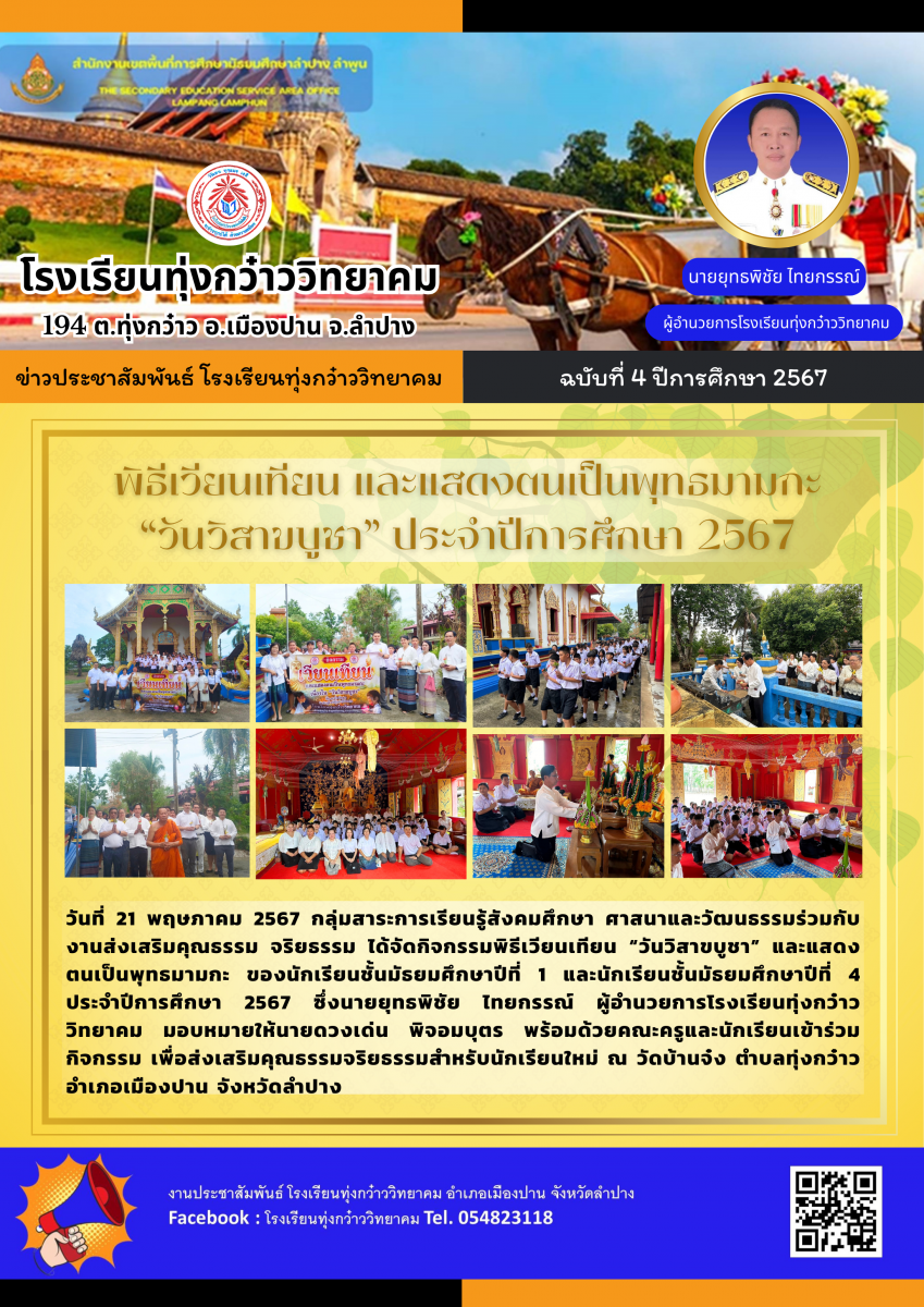 พิธีเวียนเทียน และแสดงตนเป็นพุทธมามกะ ?วันวิสาขบูชา? ประจำปีการศึกษา 2567