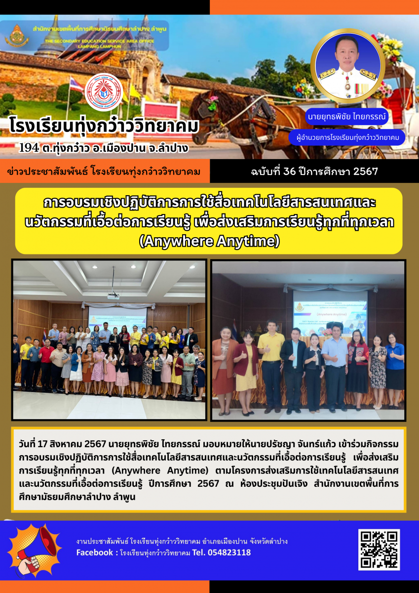 การอบรมเชิงปฏิบัติการการใช้สื่อเทคโนโลยีสารสนเทศและ นวัตกรรมที่เอื้อต่อการเรียนรู้ เพื่อส่งเสริมการเรียนรู้ทุกที่ทุกเวลา (Anywhere Anytime)
