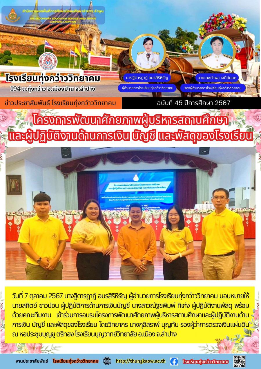 โครงการพัฒนาศักยภาพผู้บริหารสถานศึกษา และผู้ปฏิบัติงานด้านการเงิน บัญชี และพัสดุของโรงเรียน