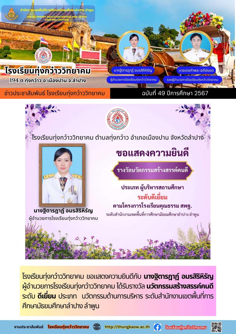 นวัตกรรมสร้างสรรค์คนดี ระดับ ดีเยี่ยม ประเภท นวัตกรรมด้านการบริหาร