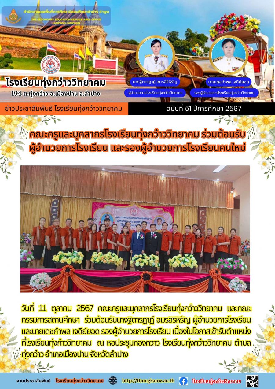 คณะครูและบุคลากรโรงเรียนทุ่งกว๋าววิทยาคม ร่วมต้อนรับ ผู้อำนวยการโรงเรียน และรองผู้อำนวยการโรงเรียนคนใหม่