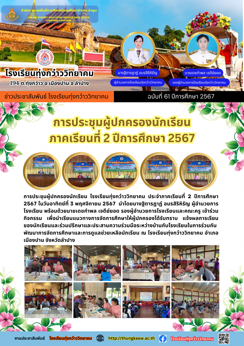 การประชุมผู้ปกครองนักเรียน ภาคเรียนที่ 2 ปีการศึกษา 2567