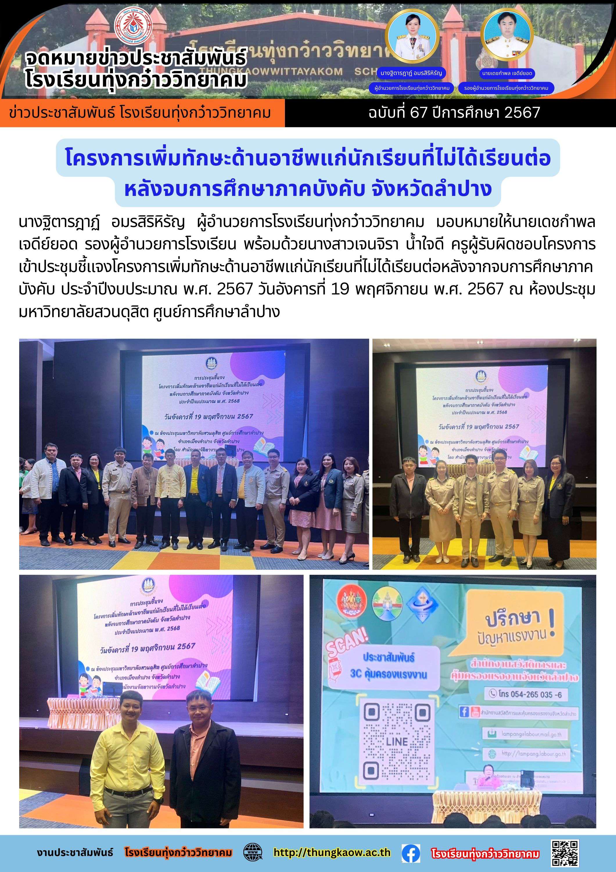 โครงการเพิ่มทักษะด้านอาชีพแก่นักเรียนที่ไม่ได้เรียนต่อ หลังจบการศึกษาภาคบังคับ จังหวัดลำปาง