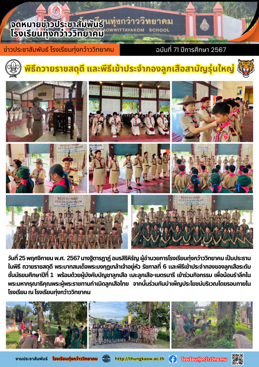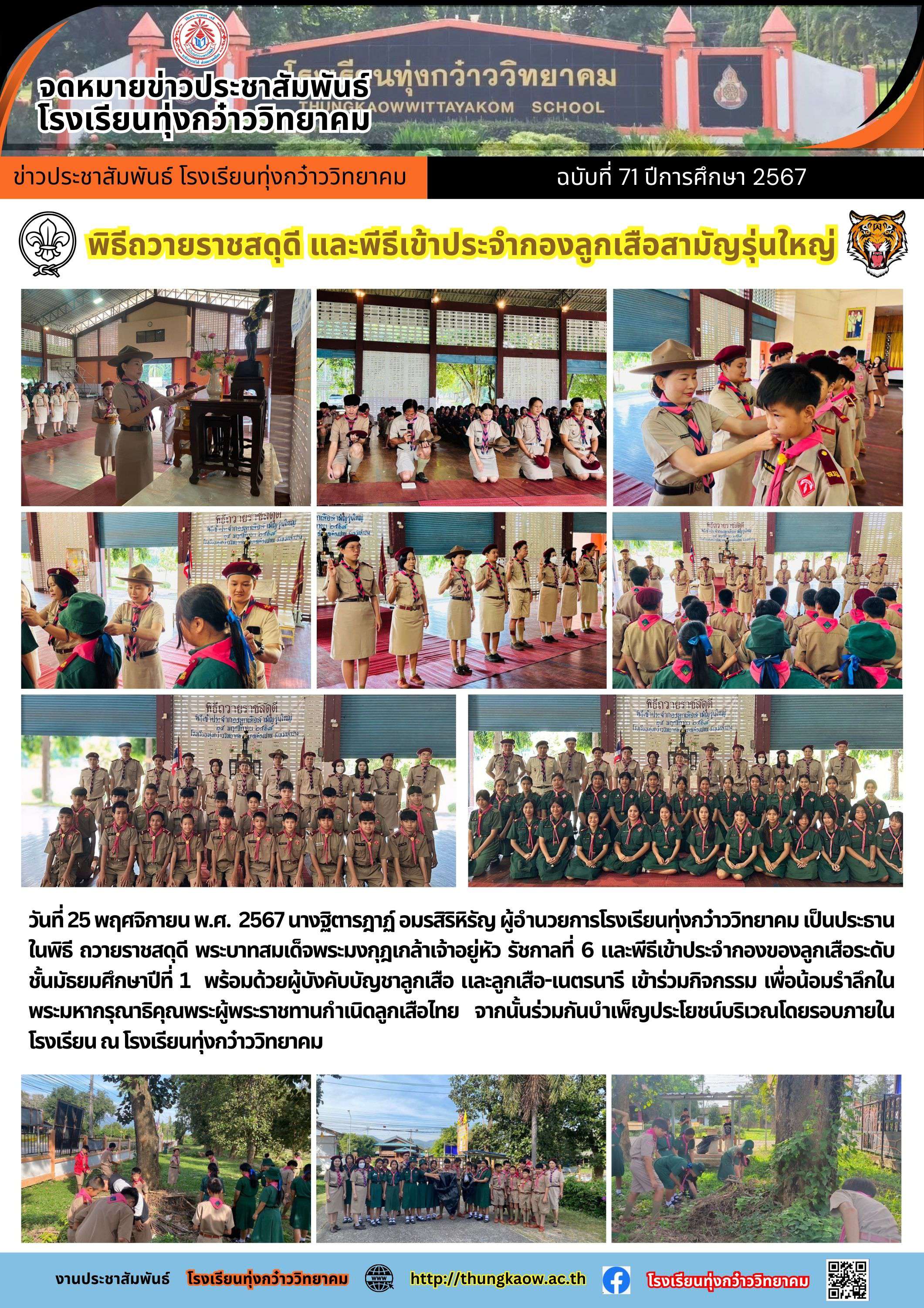 พิธีถวายราชสดุดี และพีธีเข้าประจำกองลูกเสือสามัญรุ่นใหญ่