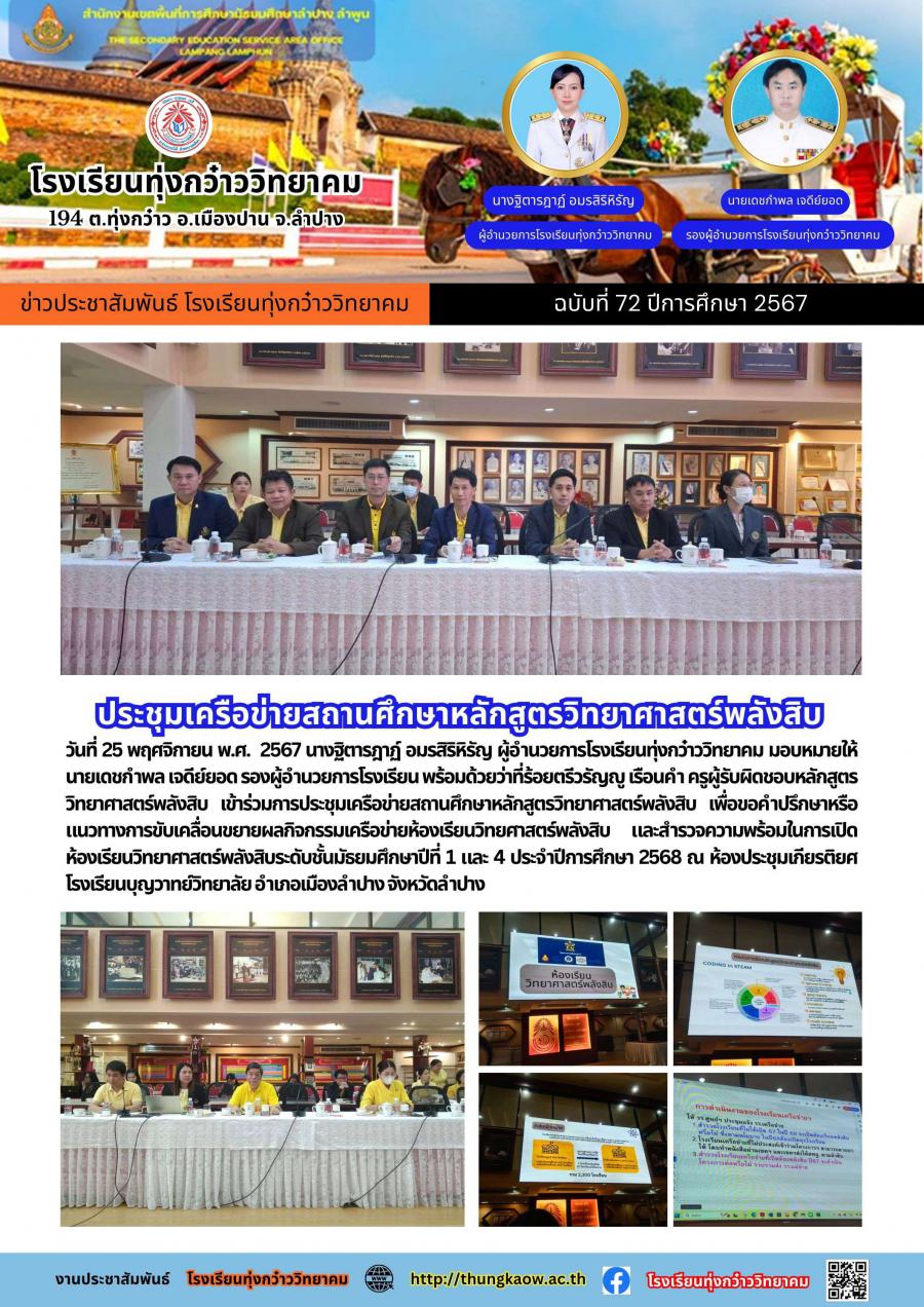 ประชุมเครือข่ายสถานศึกษาหลักสูตรวิทยาศาสตร์พลังสิบ