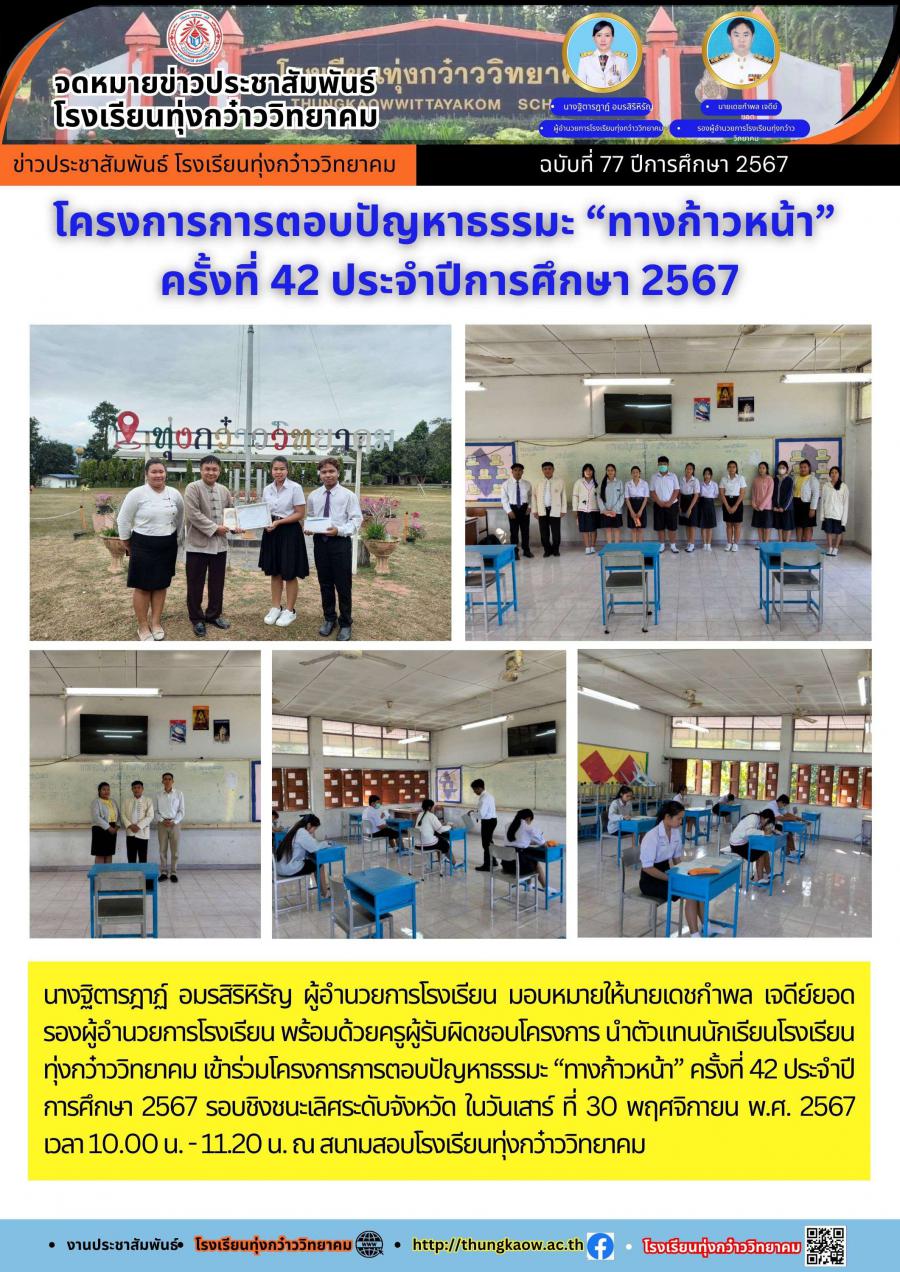 โครงการการตอบปัญหาธรรมะ ?ทางก้าวหน้า? ครั้งที่ 42 ประจำปีการศึกษา 2567