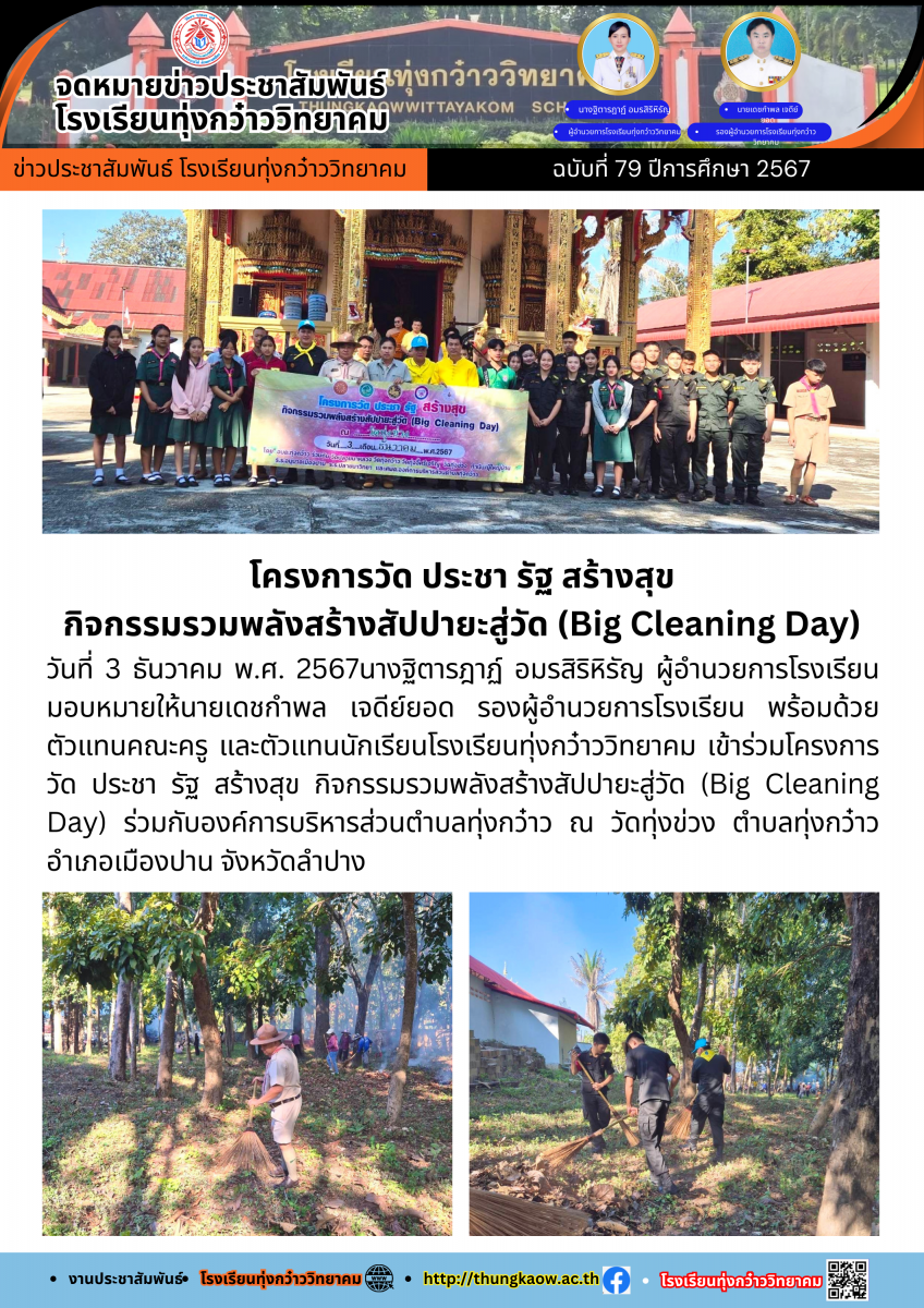 โครงการวัด ประชา รัฐ สร้างสุข กิจกรรมรวมพลังสร้างสัปปายะสู่วัด (Big Cleaning Day)