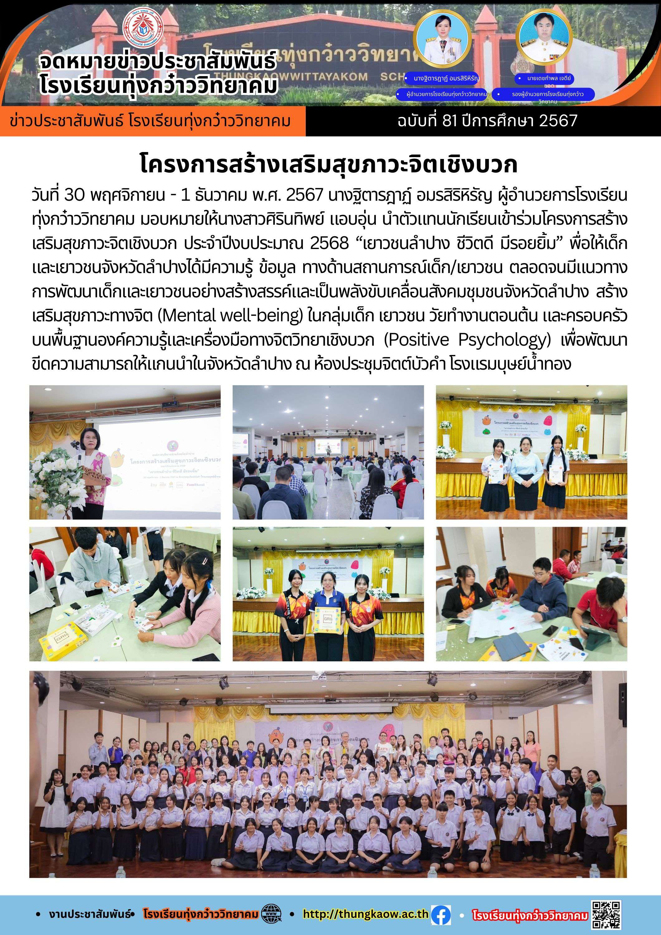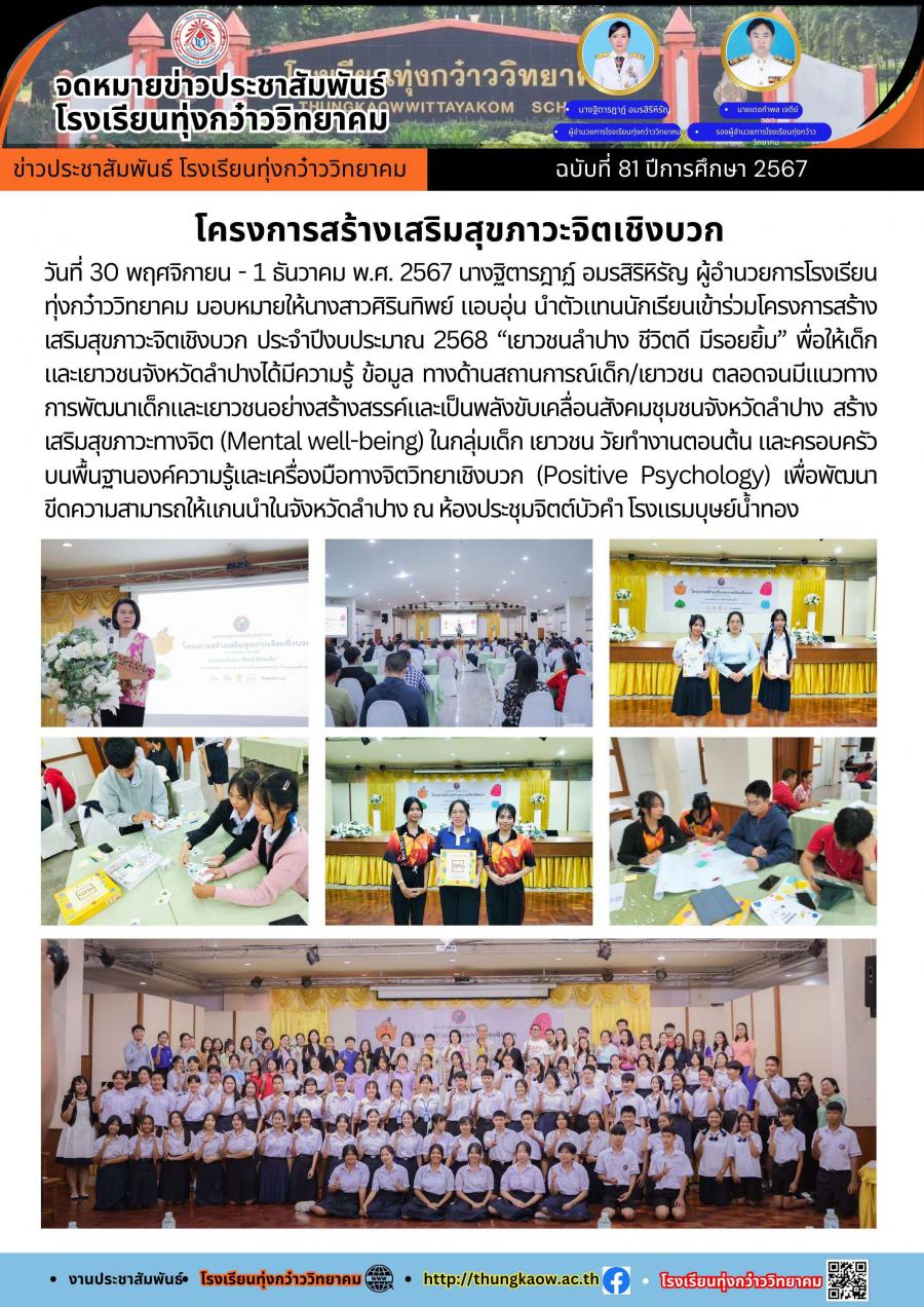 โครงการสร้างเสริมสุขภาวะจิตเชิงบวก
