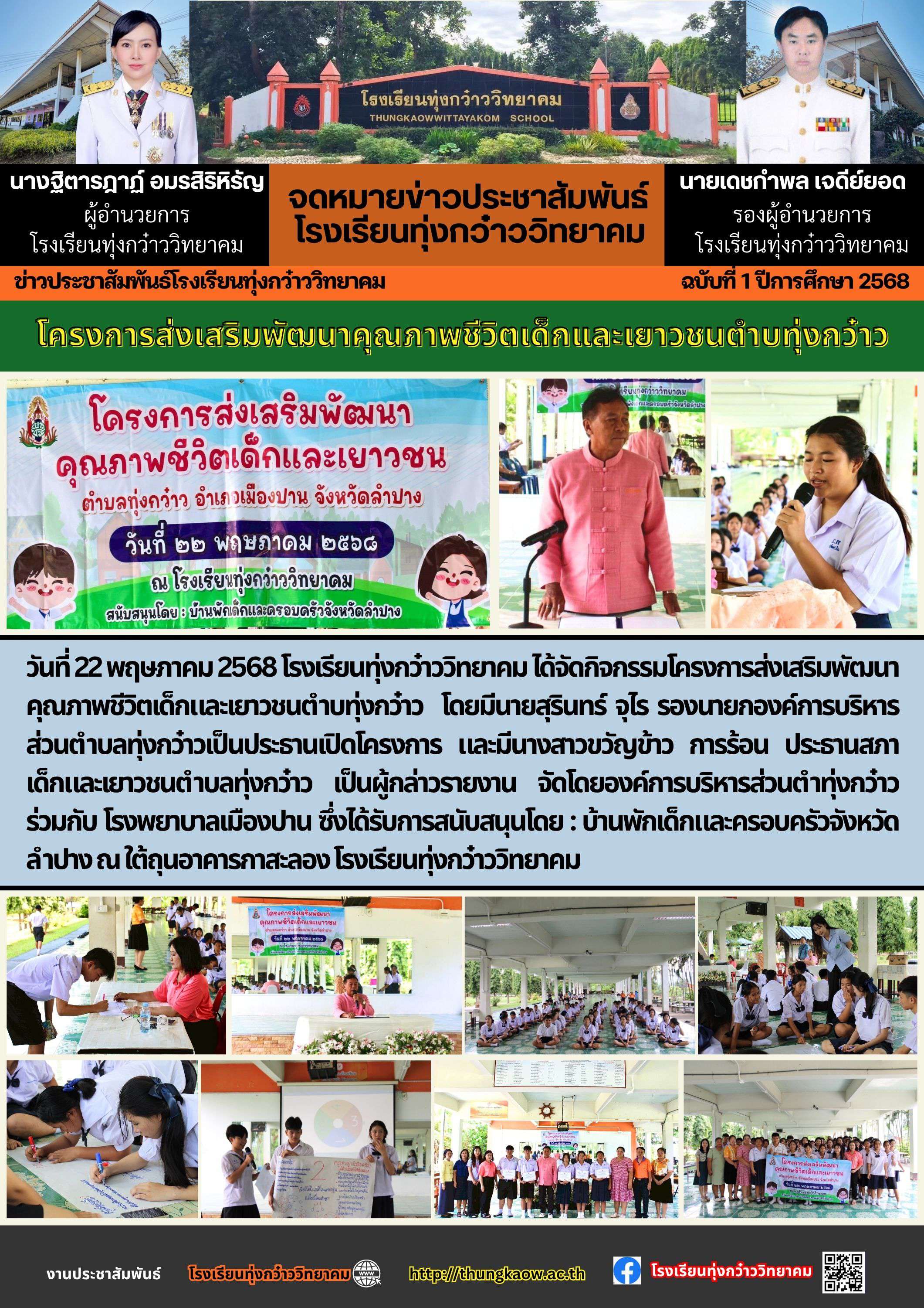 โครงการส่งเสริมพัฒนาคุณภาพชีวิตเด็กและเยาวชนตำบทุ่งกว๋าว