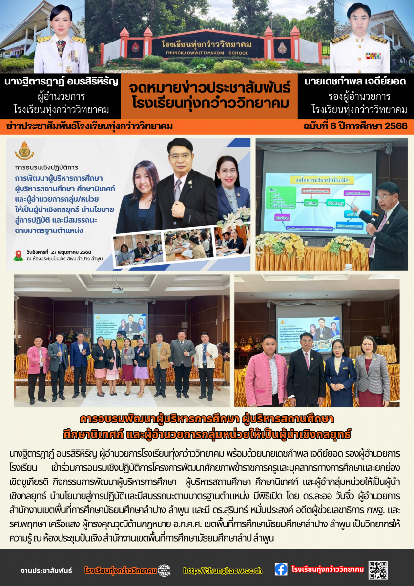 การอบรมพัฒนาผู้บริหารการศึกษา ผู้บริหารสถานศึกษา ศึกษานิเทศก์ และผู้อำนวยการกลุ่มหน่วยให้เป็นผู้นำเชิงกลยุทธ์