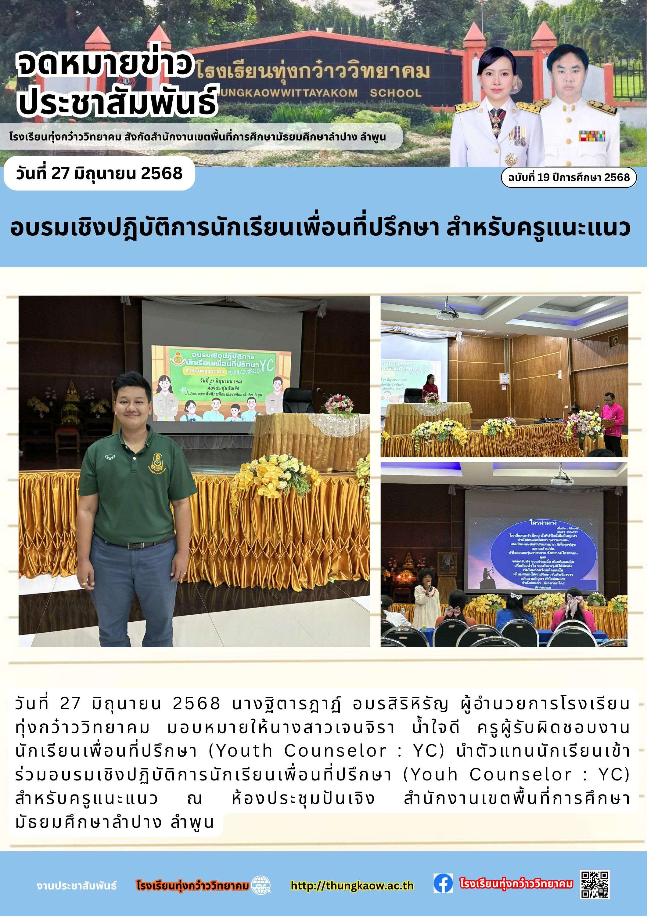 อบรมเชิงปฎิบัติการนักเรียนเพื่อนที่ปรึกษา สำหรับครูแนะแนว