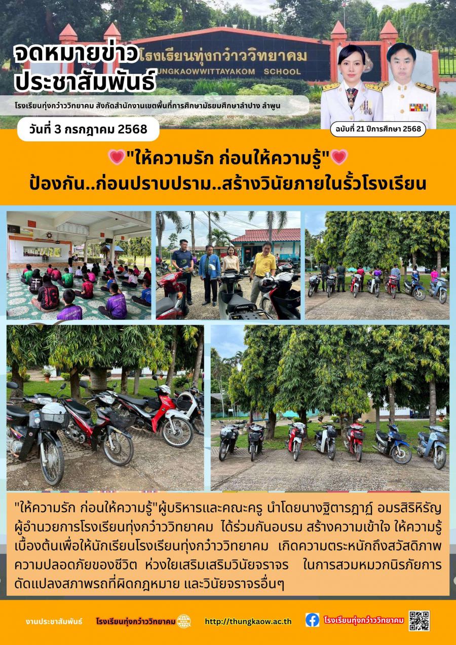 ให้ความรัก ก่อนให้ความรู้ ป้องกัน..ก่อนปราบปราม..สร้างวินัยภายในรั้วโรงเรียน